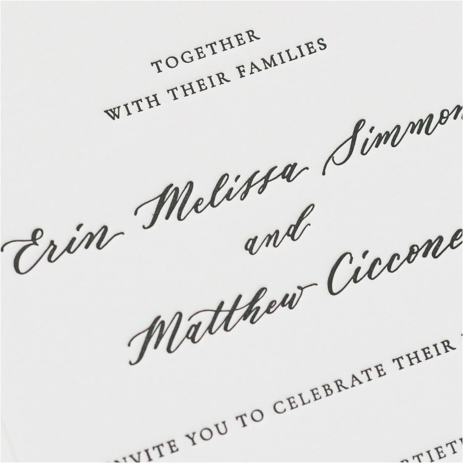 Semi-custom wedding invitations are pre-designed to offer the ability to make customizations for a personal touch with a quicker turnaround than fully custom invitation suites. All semi-custom designs can be personalized by selecting colors, paper type, and printing method, and by adding embellishments such as calligraphy addressing, envelope liners, wax seals, ribbon or twine, vellum wraps, custom postage, and more.