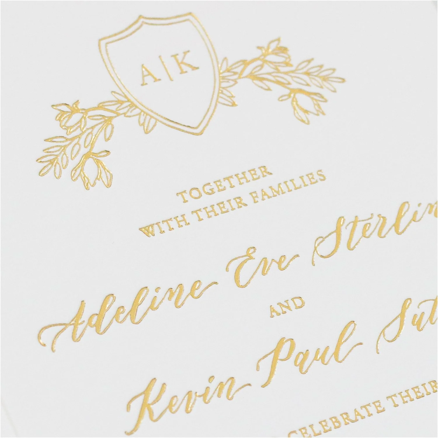 Foil printing uses a raised metal plate of your design, similar to letterpress. However, instead of ink, a metallic foil sheet is used with a heated press. The result is a beautiful metallic print of your design pressed into the paper.
